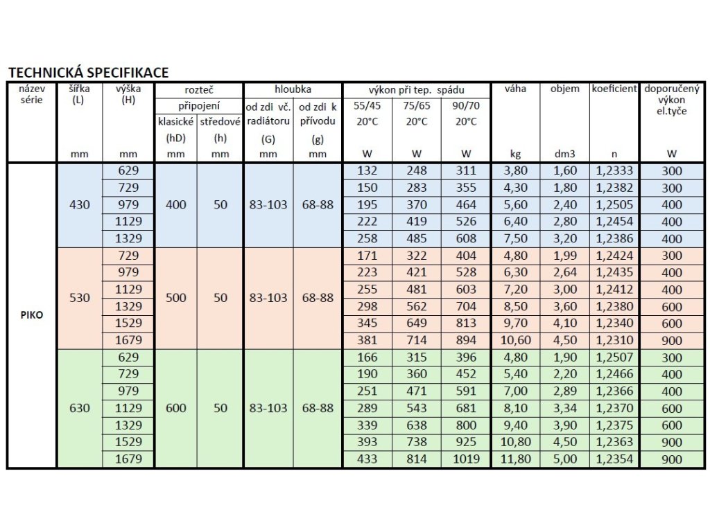 Dostupné rozměry radiátoru PIKO do koupelny: