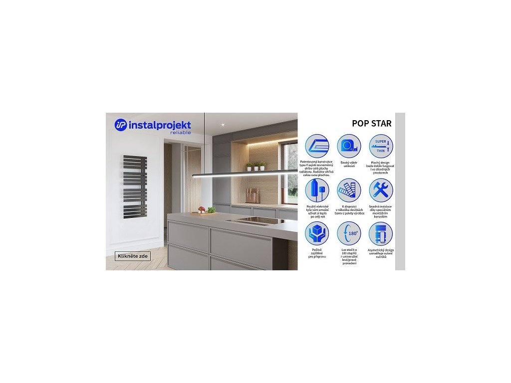 Instalprojekt Koupelnový radiátor POP STAR černá barva Barva - Černá , Doporučená topná tyč (W) - 900, Rozměr A - 60, Rozměr C - 155, Skutečný rozměr radiátoru (v mm) - 600 x 1505 mm RADPOP601531