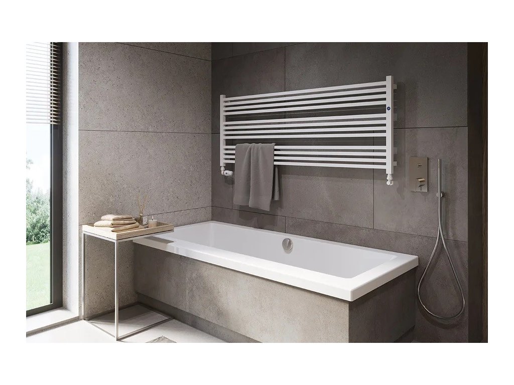 - 1200 × 555 mm, výkon 649 W, topná tyč 600 W - boční připojení