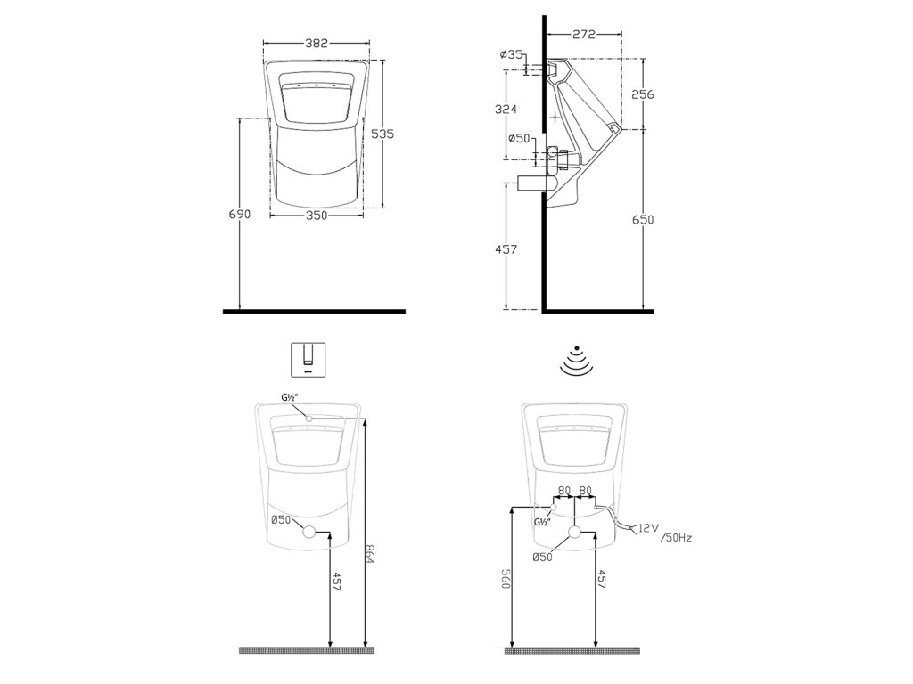 - Při instalaci s automatickým splachovačem PS002 je nutné instalovat i napájecí zdroj (PS05T nebo PS10T).
