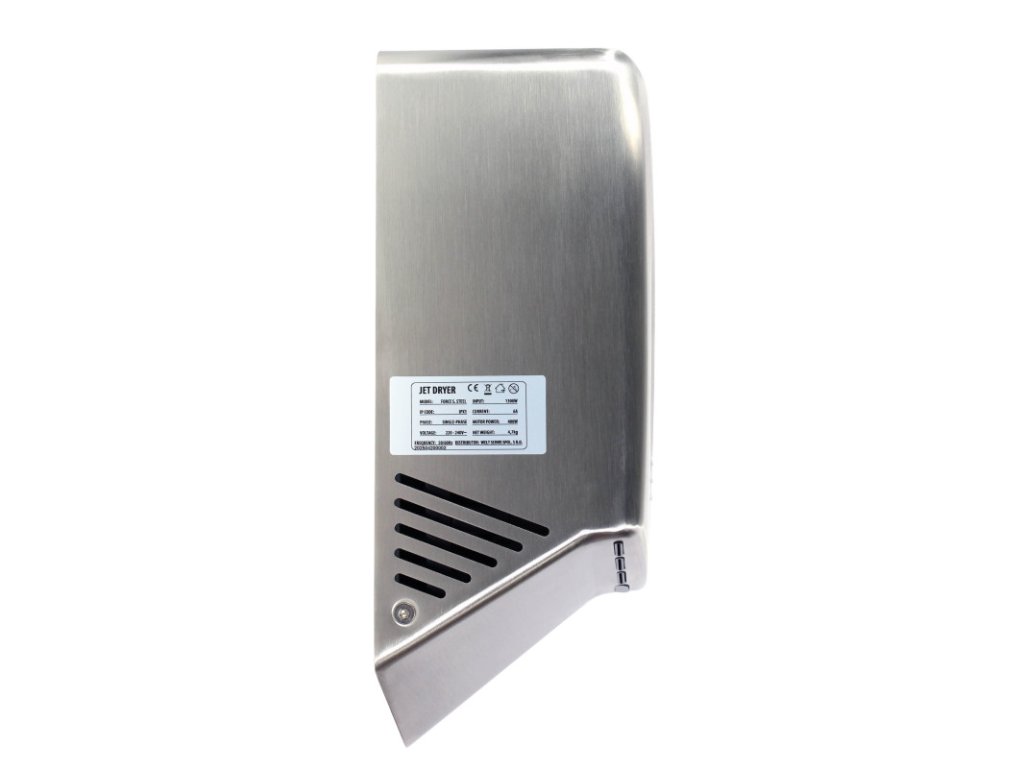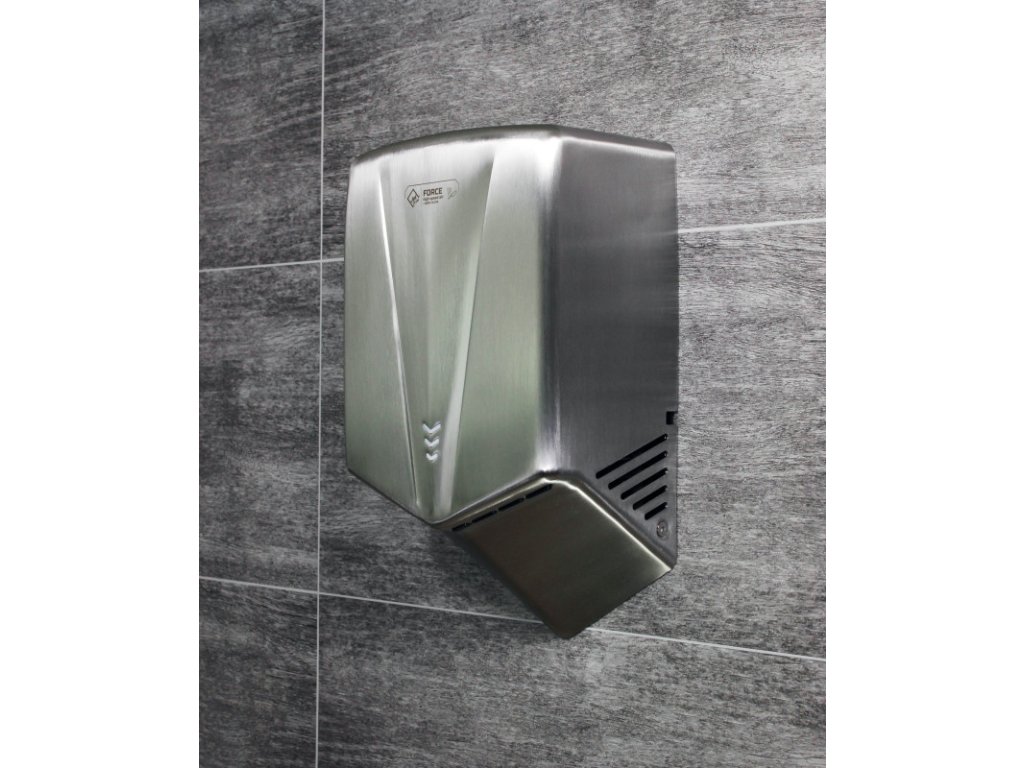 Jet Dryer FORCE je k dispozici ve variantě s kartáčovaným nerezovým povrchem nebo odolným bílým nebo černým ABS plastem. Je tak vhodný i do prostředí, kde je zvýšené riziko vandalismu nebo hrubšího zacházení. Kryt z nerezové oceli třídy 304 zaručuje dlouhou životnost a snadnou údržbu.