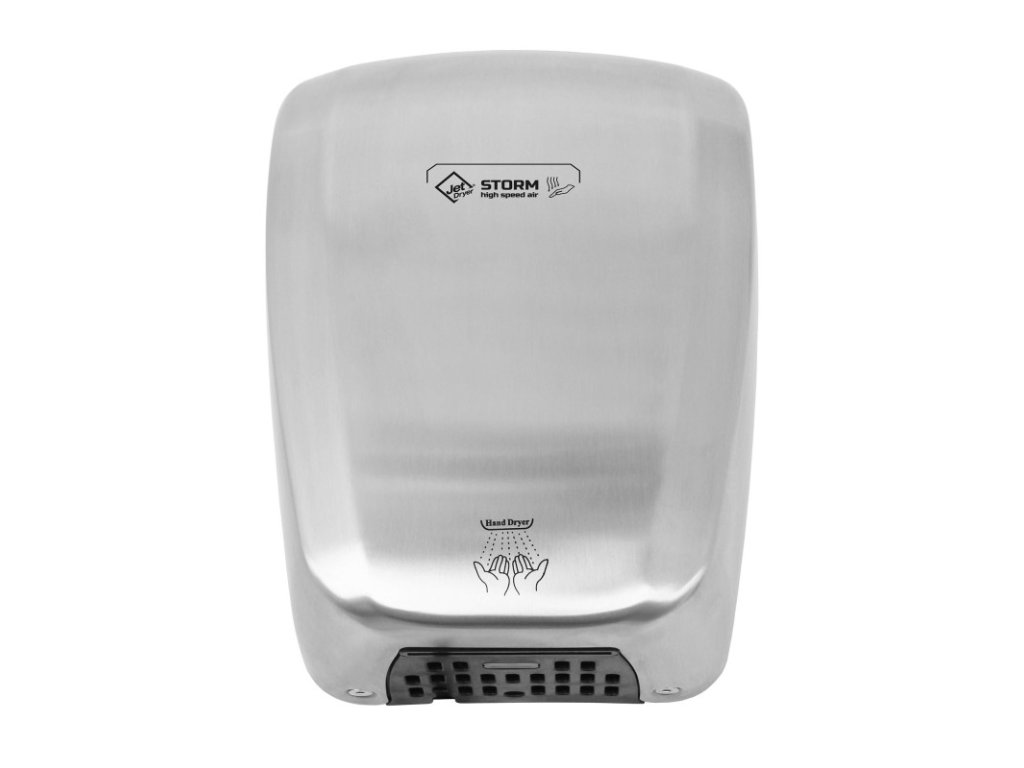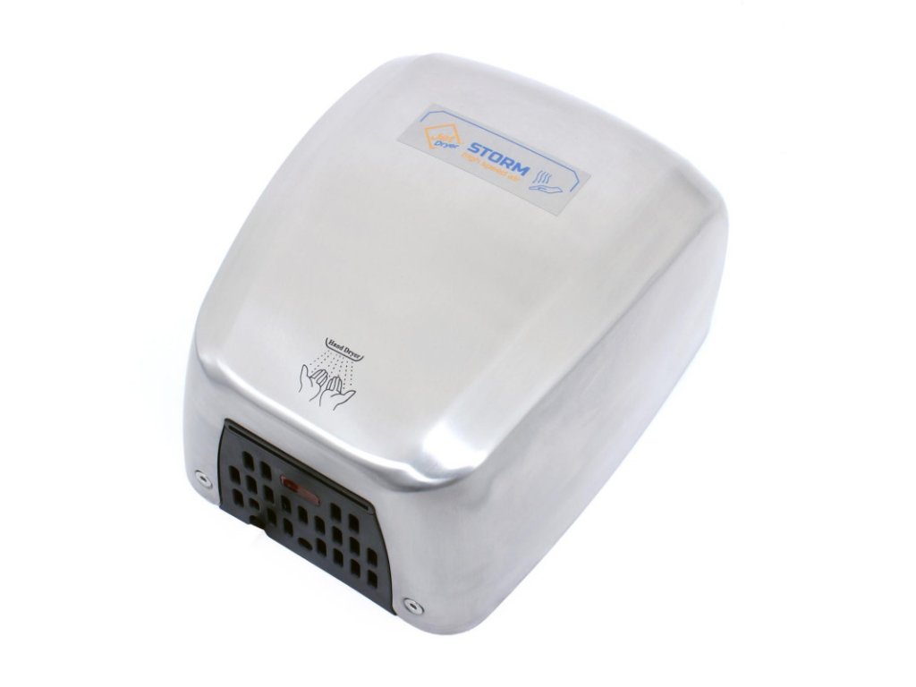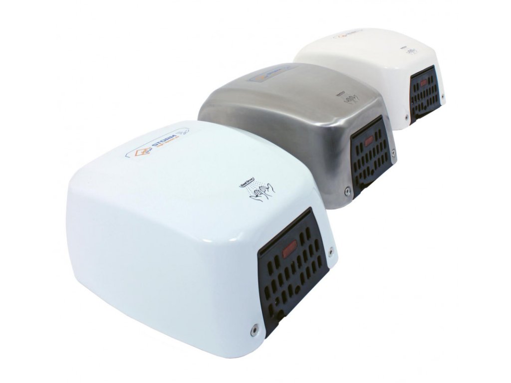 STORM představuje kombinaci kompaktních rozměrů horkovzdušných osoušečů se sušící silou tryskových vysoušečů. Robustní kovová konstrukce je vhodné i do vysoce frekventovaných míst. Osoušeč stačí naistalovat na zeď a zapomenout, žádné nákupy ubrousků, žádné přeplněné koše..