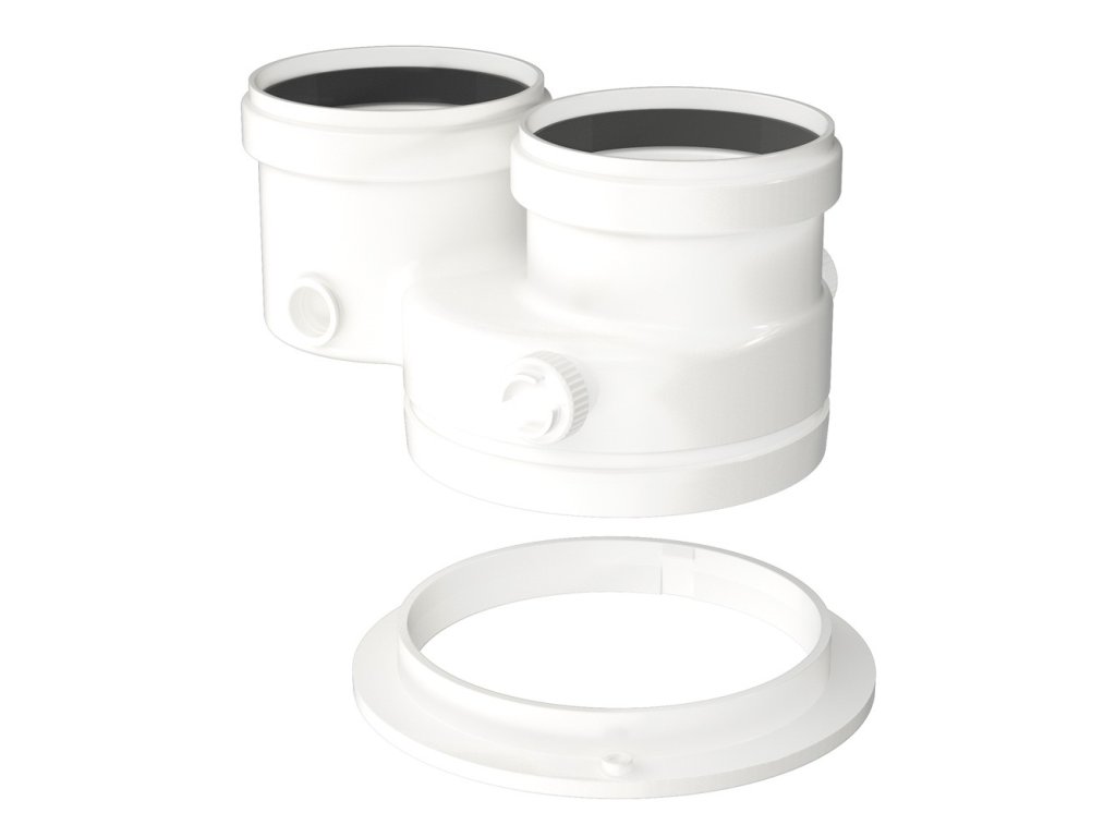 Zařízení slouží k rozdělení souosého vývodu kotle 80/125 na dvě trubky 80mm