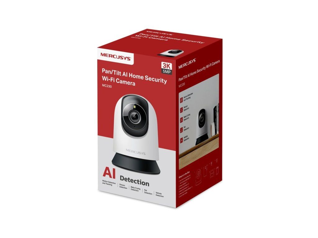 Domácí kamera Mercusys MC230 s rozlišením 5 Mpx přináší ostrý 3K obraz, 13,5× digitální zoom a pokrytí celé místnosti díky otáčení v rozsahu 360°. Inteligentní detekce pohybu, zvuků i objektů zajistí, že máte domov vždy pod kontrolou.
