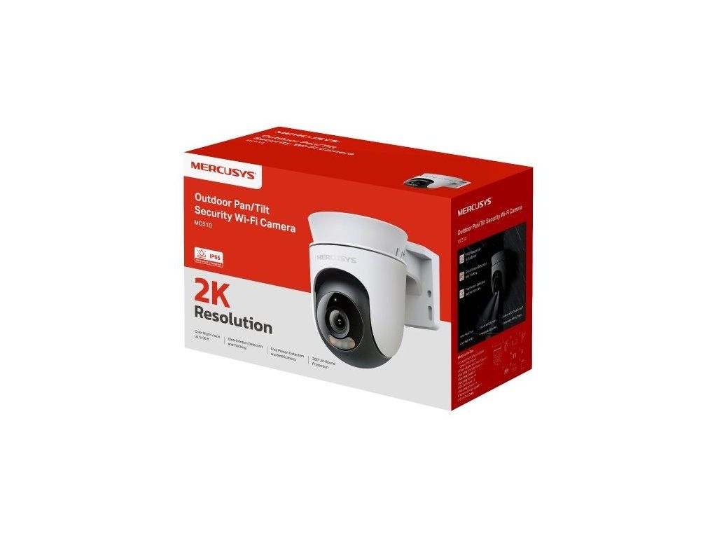 TP-Link Mercusys MC510 je venkovní otočná Wi-Fi kamera, která přináší ostrý obraz v 2K QHD (3 Mpx), 360° záběr a chytré funkce pro detekci osob i pohybu. Díky barevnému nočnímu vidění, obousměrnému zvuku a odolnosti IP65 zajistí spolehlivou ochranu vašeho domova či firmy po celý den i noc.