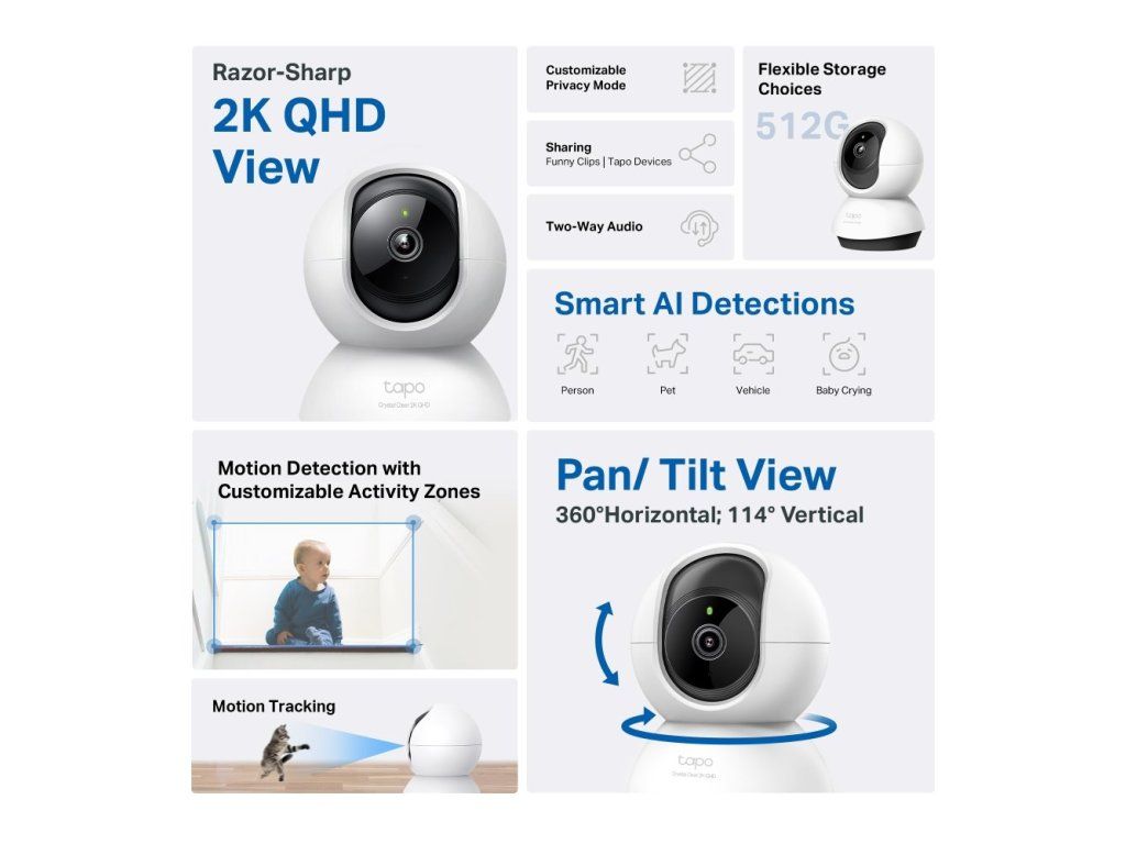 Video kamera nahrává z různých úhlů. Zvládá totiž 360° horizontální a 114° vertikální rotaci. Také můžete využít funkce videa v reálném čase, obousměrný zvuk (mikrofon i reproduktor) a praktickou aplikaci Tapo Camera.