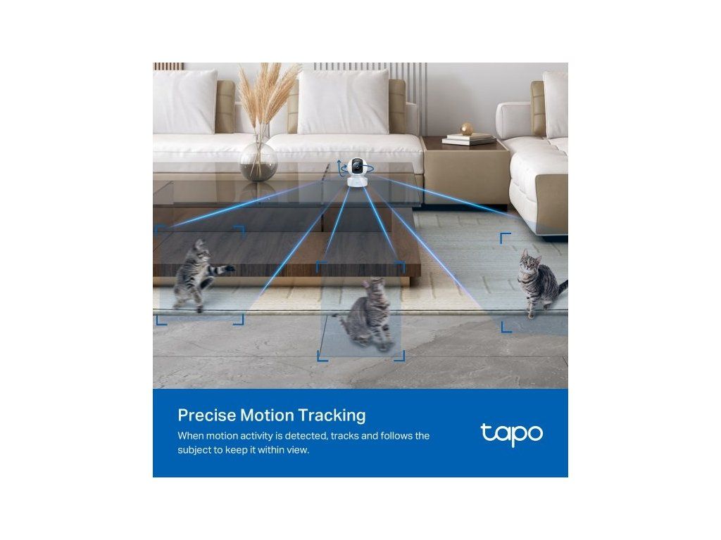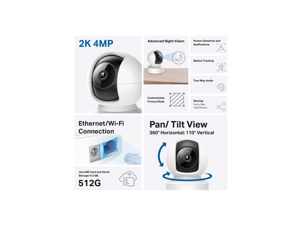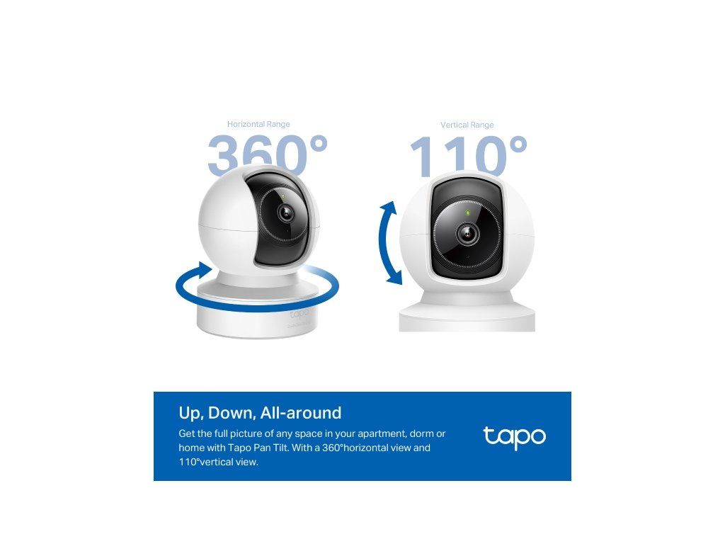 Wi-Fi kameru můžete ovládat také hlasem, a to pomocí hlasových asistentů Google Assistant a Amazon Alexa. Video kamera nahrává z různých úhlů. Zvládá totiž 360° horizontální a 110° vertikální rotaci.