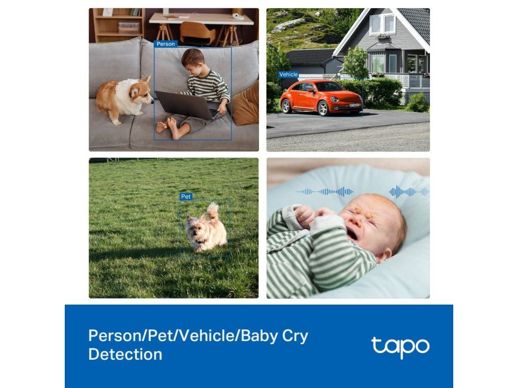 Kamera poskytuje jasný obraz v rozlišení 2880 × 1620 px díky 1/2.7” CMOS Starlight senzoru. AI funkce rozpoznají osoby, domácí mazlíčky, vozidla i pláč dítěte a minimalizují zbytečná upozornění. V případě pohybu kamera automaticky sleduje objekt a odešle upozornění do aplikace.
