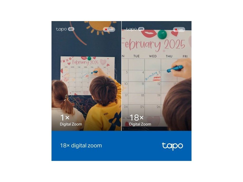 Wi-Fi kamera TP-Link Tapo C260 vám zjednoduší zabezpečení vaší domácnosti. Díky vysoce kvalitnímu rozlišení 4K 8MP si na záznamech prohlédnete každý důležitý detail. Zároveň kamera umožňuje živý náhled toho, co se v tu chvíli odehrává před objektivem. Navíc podporuje 18násobný digitální zoom a má široký rozsah pohybu.