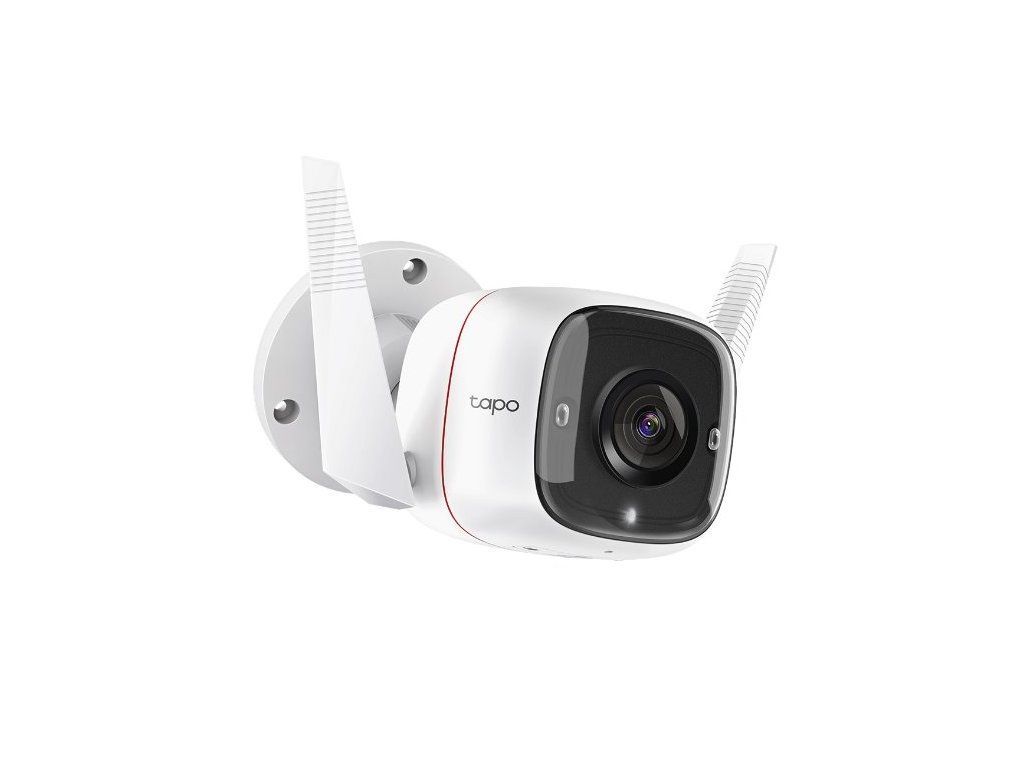 Tapo C310 je venkovní 3MPx bezpečnostní kamera typu Bullet s ethernetem, WiFi, dvěma fixními anténami pro přenos bezdrátového signálu, IP66 odolností, slotem pro microSD kartu až do kapacity 128 GB, obousměrným audiem a IR přísvitem do vzdálenosti 30 m.