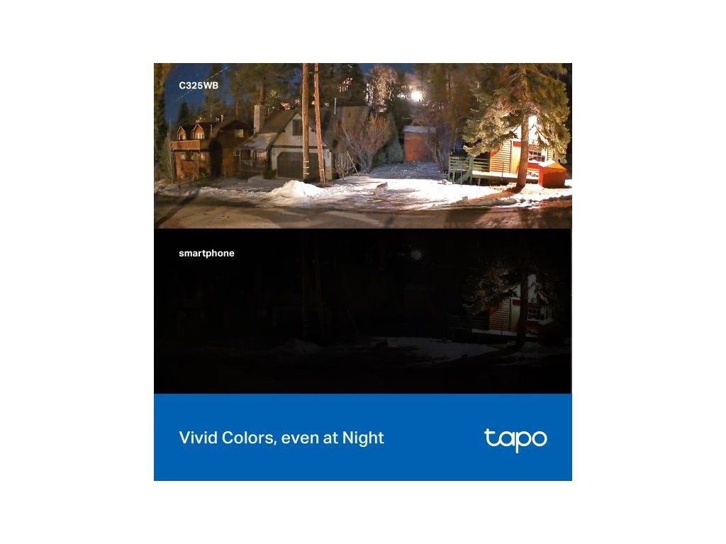 Bezpečnostní kamera Tapo C325WB natáčí ve dne v noci bez sebevětších obtíží. Barevný noční režim s technologií ColorPro a HDR zajistí dokonalý obraz nahrávaný za slabého okolního osvětlení. Barvy působí přirozeně i za tmy a neunikne vám žádný detail ani v temném zákoutí vašeho pozemku. Nepotřebujete venkovní světlo, takže ušetříte za energie. Zároveň žádné světlo neláká poletující hmyz, který by mohl spustit falešný poplach.