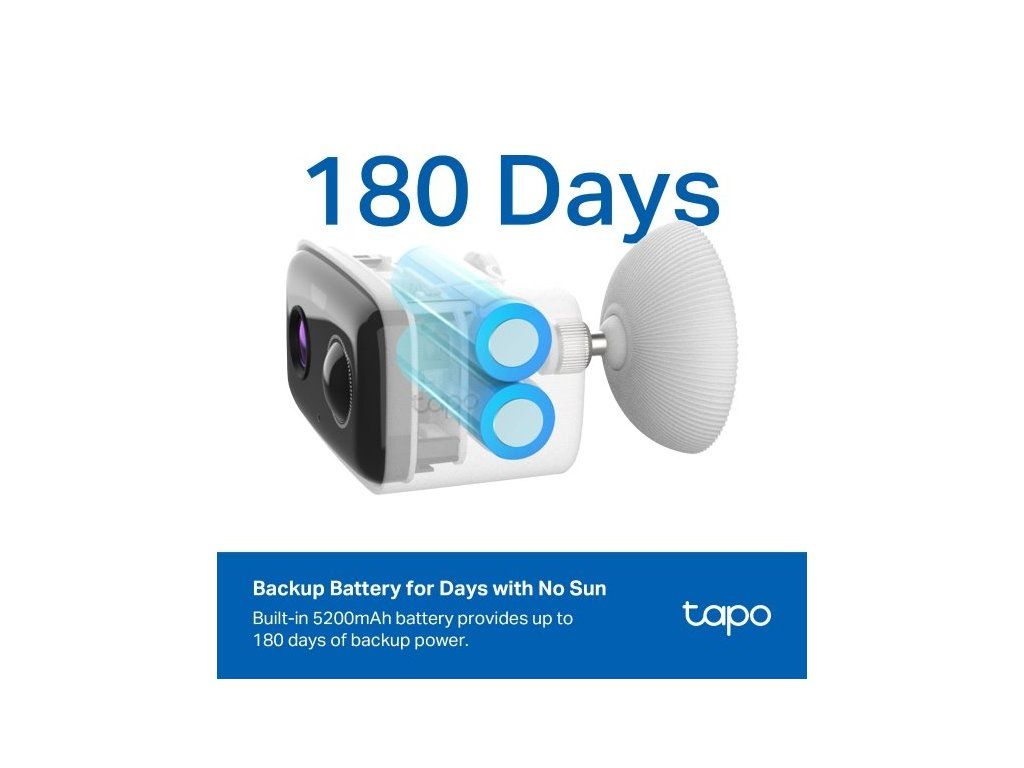 Kamera Tapo C400 KIT přináší úplnou svobodu od kabelů. Díky solárnímu panelu a velké baterii nepotřebujete pravidelné dobíjení a máte jistotu spolehlivého dohledu po celý rok. Vhodná pro sledování zahrady, příjezdové cesty, garáže či terasy.