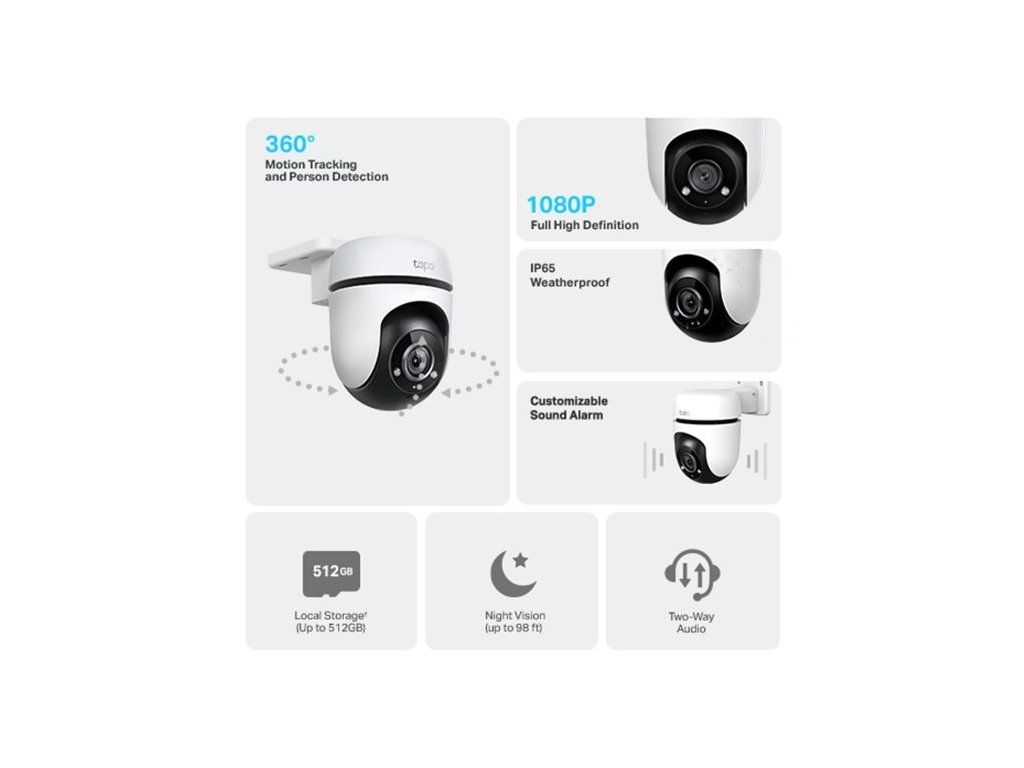 Máme pro vás skvělé řešení v podobě 2MPx IP kamery TP-Link Tapo C500, která nabízí čistý obraz ve Full HD rozlišení a poskytuje 360° horizontální a 130° vertikální rozsah pro zachycení celého okolí. Zároveň podporuje mnoho praktických funkcí, protokolů a technologií, jako je například monochromatický noční režim, detekce osob a sledování pohybu, komprese videa H.264, obousměrné audio, přizpůsobení zvukového alarmu, vzdálená správa přes chytrou aplikaci, hlasové ovládání přes Google Home / Amazon Alexa a ukládání záznamů na cloud či microSD kartu.