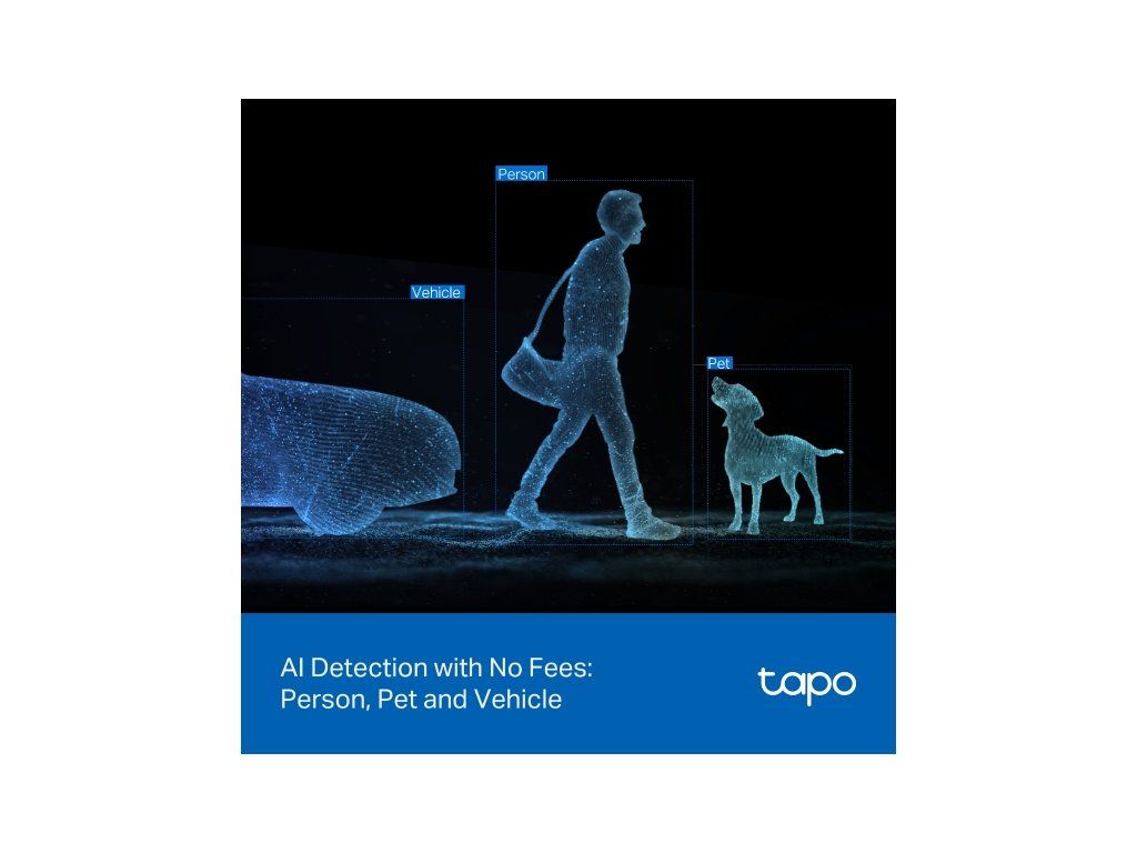 Kamera využívá pokročilou AI, která rozpozná osoby, zvířata i vozidla – bez měsíčních poplatků. Díky funkci „One-Tap Focus“ rychle zaostří na vybranou oblast. Notifikace a nahrávky lze přizpůsobit pomocí zón a citlivosti.