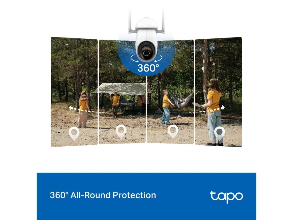 Tapo C665G vám zajistí nepřetržité 24/7 sledování v ohromujícím 4K rozlišení, a to i bez klasického napájení. Díky integrovanému solárnímu panelu a silné baterii funguje bezúdržbově a ekologicky. Kamera se otáčí v rozsahu 360° horizontálně a 98° vertikálně, čímž pokryje celou sledovanou plochu.
