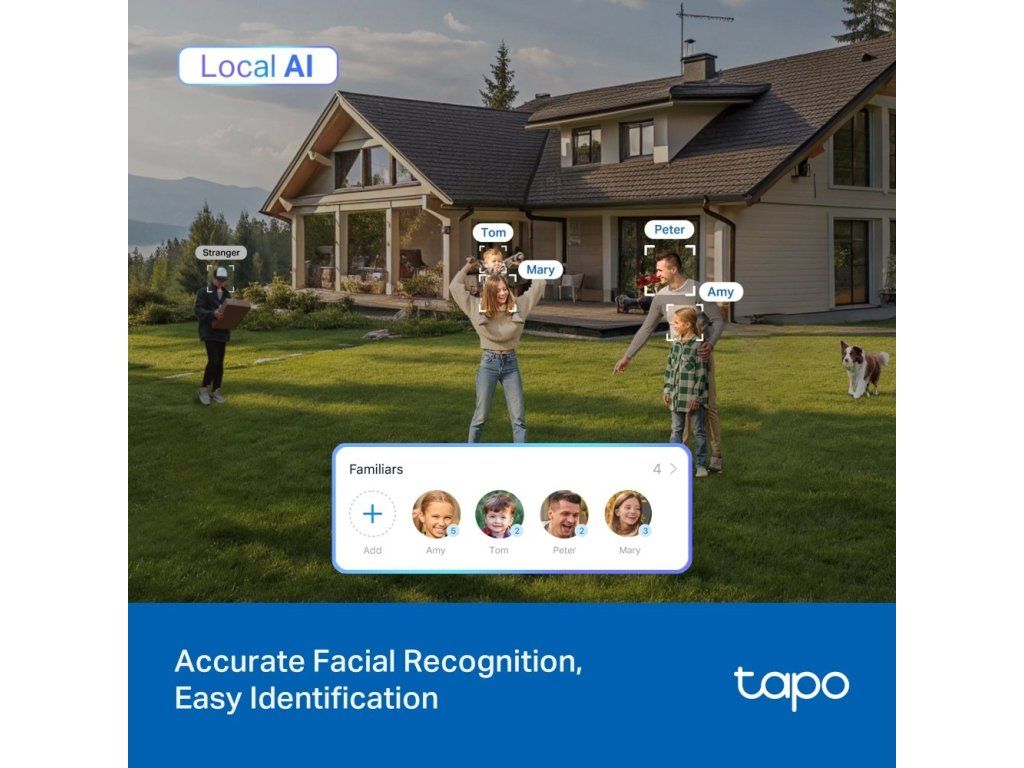 Vestavěná AI zdarma rozpozná osoby, domácí mazlíčky i vozidla a nově i obličeje – s lokálním zpracováním pro maximální soukromí. Kamera vám tak pošle oznámení jen tehdy, kdy je to opravdu důležité. Zároveň umožňuje snadno vyhledat konkrétní události díky chytrému přehrávání a přehlednému časovému záznamu.