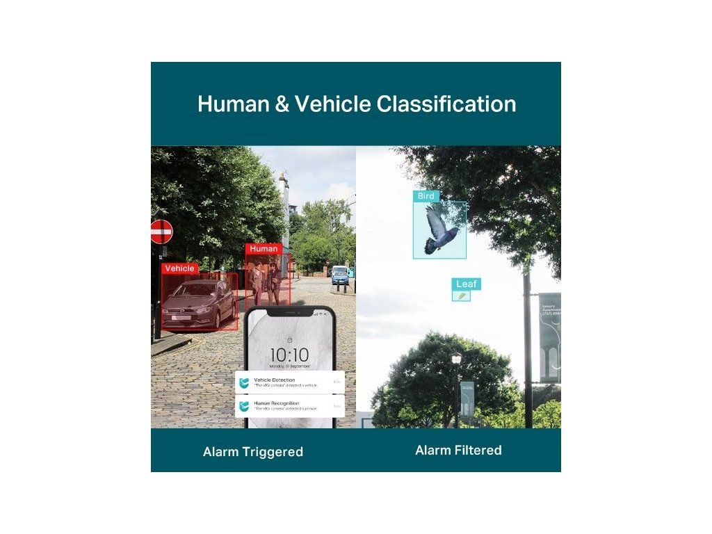 Kamera TP-Link VIGI monitoruje své okolí a díky pokročilým algoritmům dokáže rozlišit lidi a vozidla od ostatních objektů. Pokud chcete dostávat oznámení pouze v některých případech, spustíte pouze detekci lidí či vozidel (nebo detekci vozidel i lidí). Kamera nebude reagovat na padající listí a na poletující ptáky.