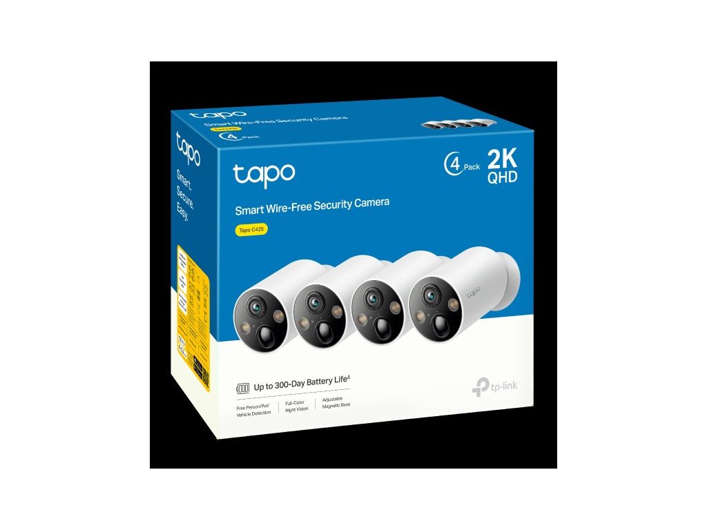 Bezpečnostní kamerový set TP-Link Tapo C425 je ideální pro venkovní zabezpečení vaší domácnosti či firmy. Připojíte ji bezdrátově, takže ji můžete umístit kamkoliv do exteriéru i interiéru. Instalace je opravdu snadná a trvá jen několik minut. Pomůže vám s ní aplikace Tapo, kterou si můžete stáhnout do svého chytrého telefonu. V balení najdete 2 kamery C425 s bateriemi a příslušenstvím, jako jsou adaptéry či USB kabel.
