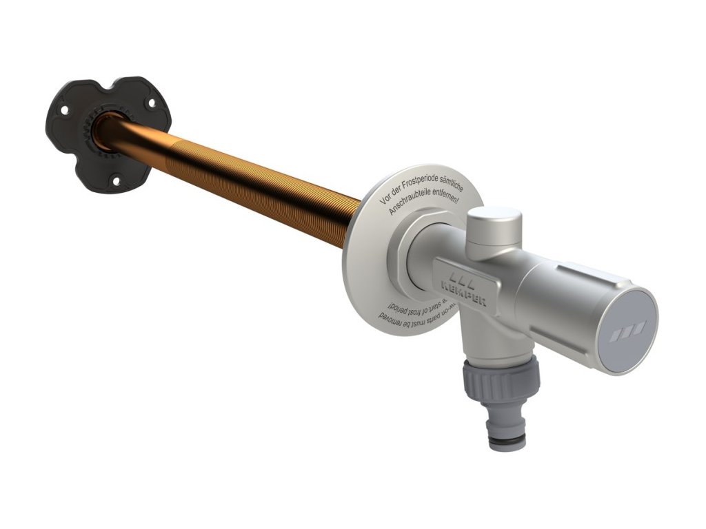Nezámrzná venkovní armatura Kemper FROSTI s rukojetí vhodná pro instalaci do hrubých staveb a pro dodatečnou instalaci na již dokončenou obvodovou stěnu.