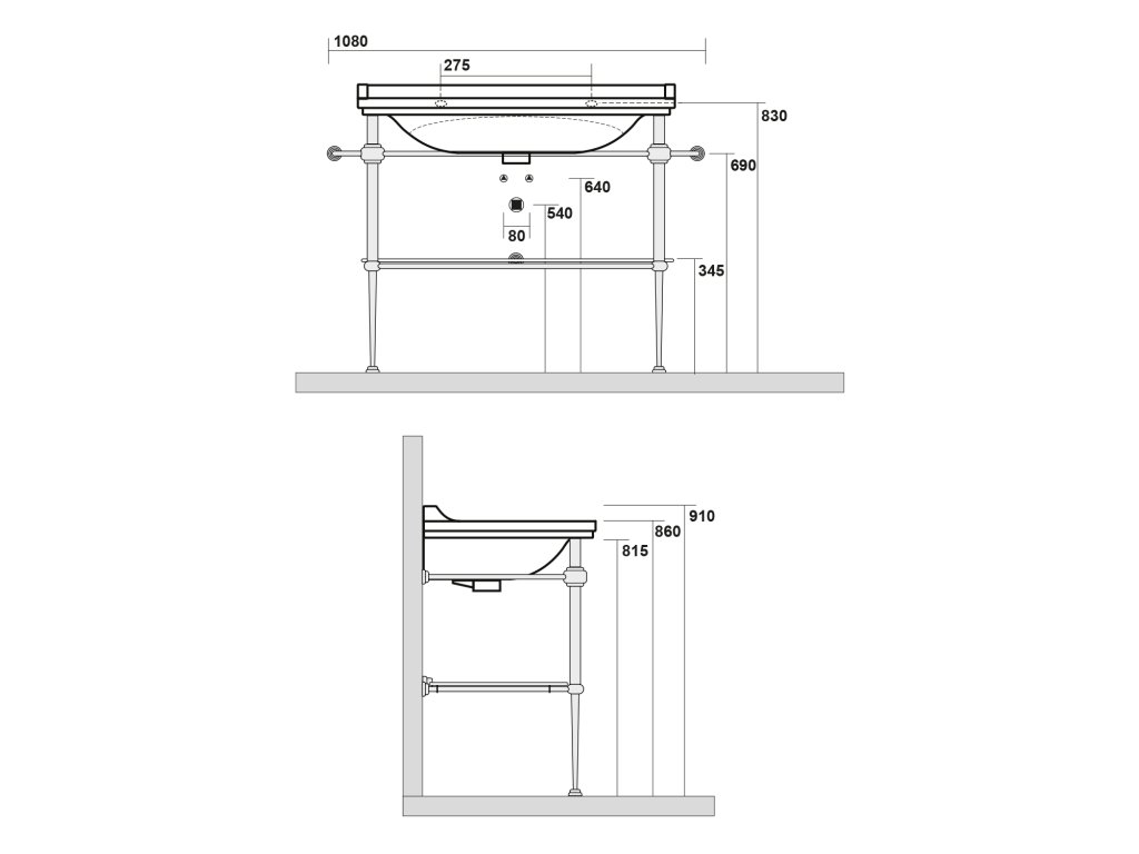 Kerasan WALDORF konstrukce pro umyvadlo 100cm se skleněnou poličkou, chrom 9196K1