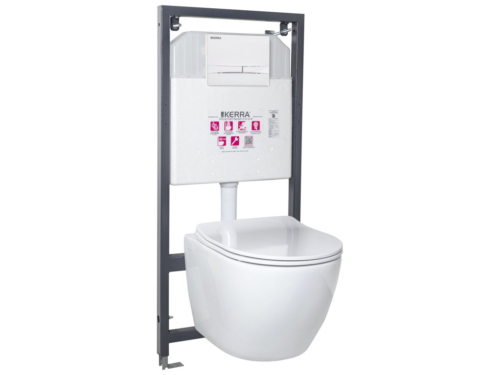 - součástí je splachovací modul, závěsná mísa, bílé splachovací tlačítko, šrouby k připevnění mísy