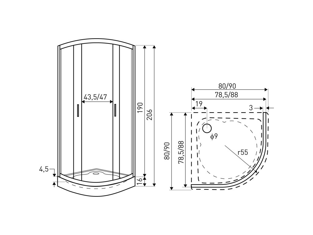 Kerra Madera čtvrtkruhový sprchový kout Rozměr koutu: 90x90cm, 1194_90X
