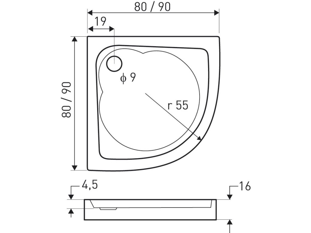 | Splash Black 90 | 89 cm | 89 cm | 190 cm |
