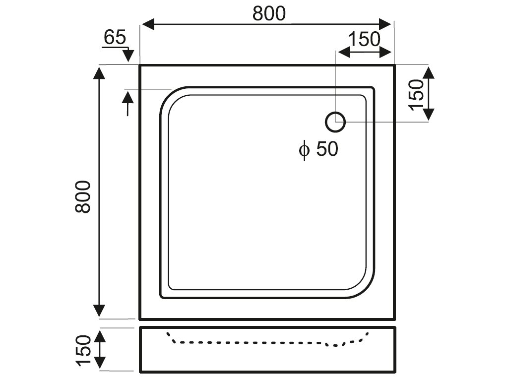 Velmi praktická a kvalitní sprchová čtvercová vanička, vyrobena z kvalitního sanitárního akrylátu (vyztužen pryskyřicí).