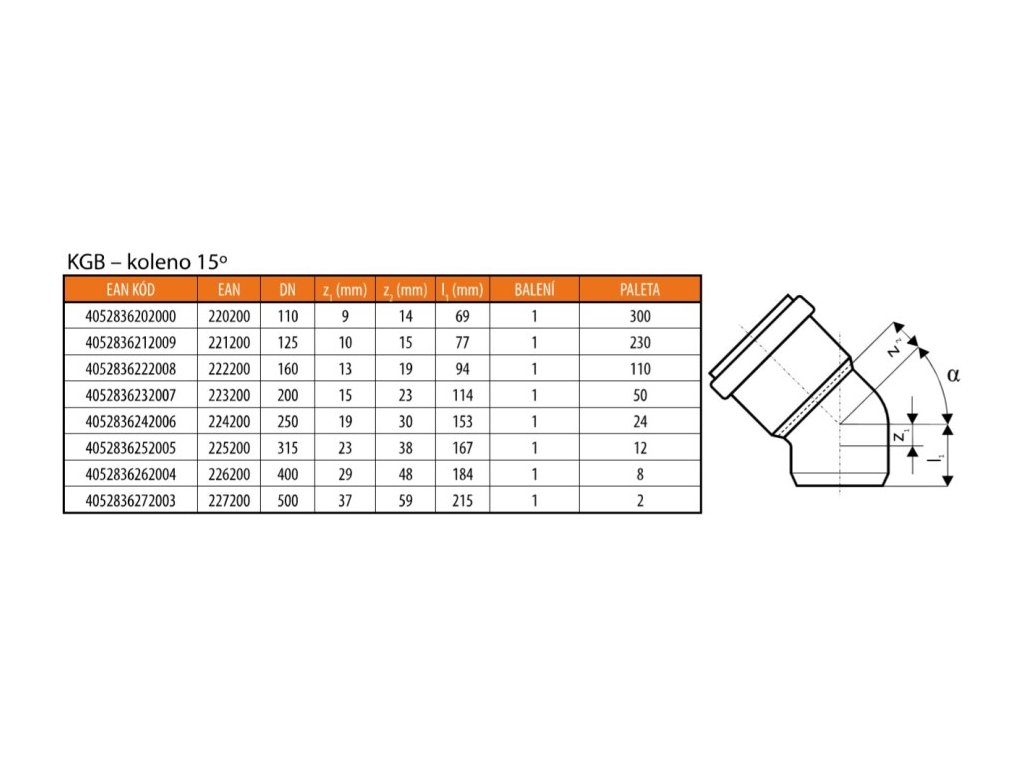 KG KGB koleno odpadní DN110, 15°, PVC, oranžová, 220200