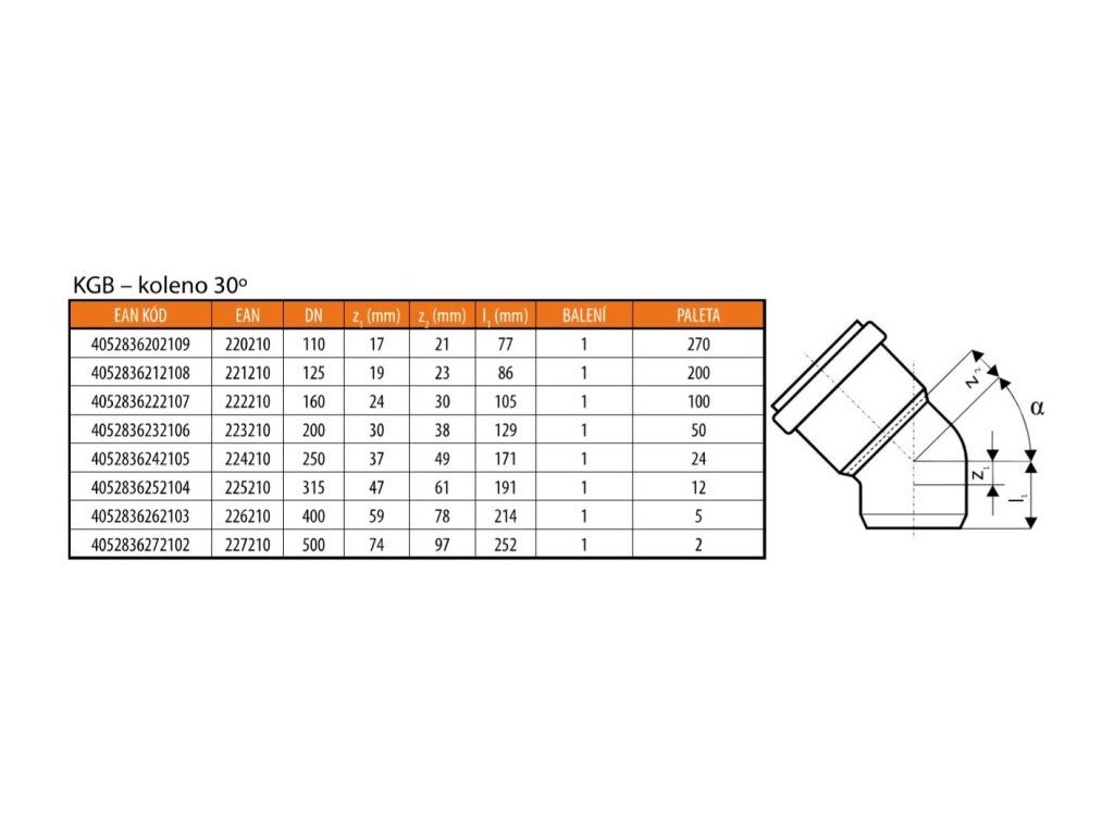 KG KGB koleno odpadní DN110, 30°, PVC, oranžová, 220210