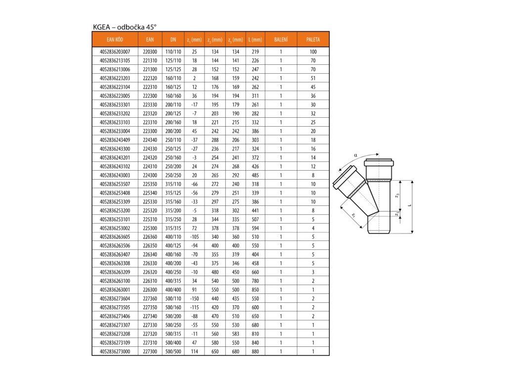 KG KGEA odbočka odpadní DN125/110, 45°, PVC, oranžová, 221310