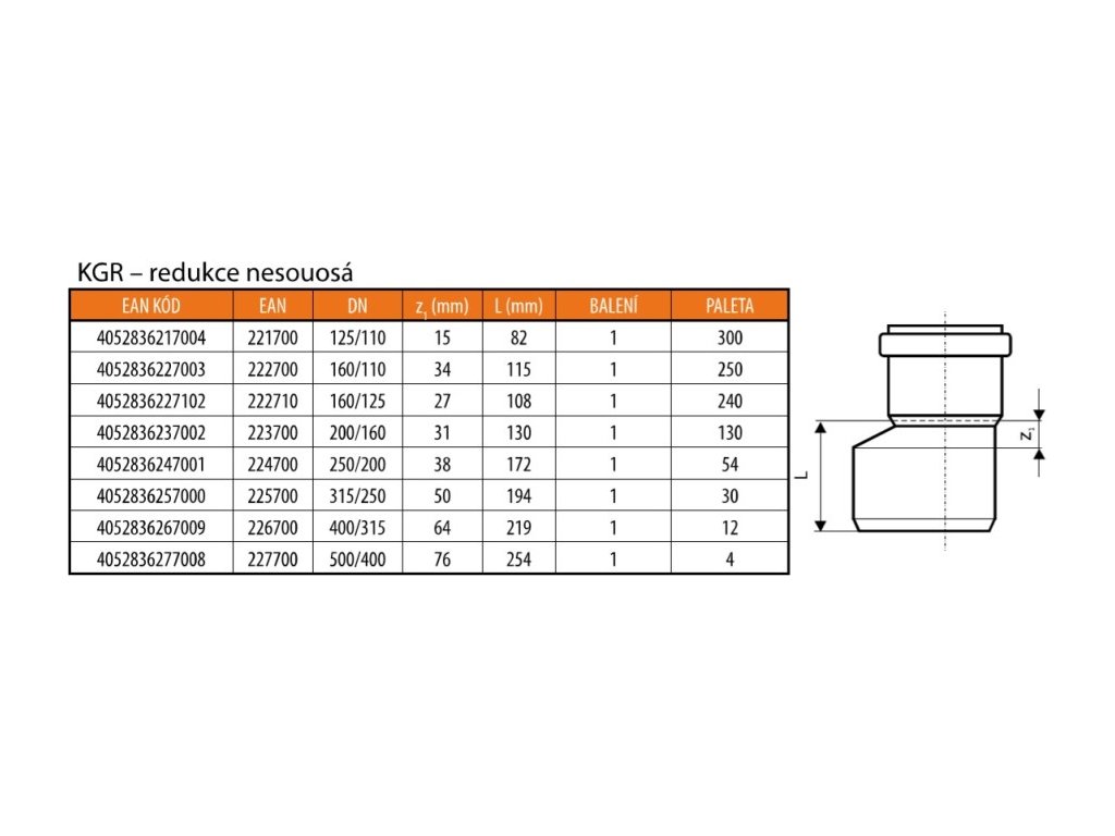 KG KGR redukce nesouosá DN125/110, PVC, oranžová, 221700