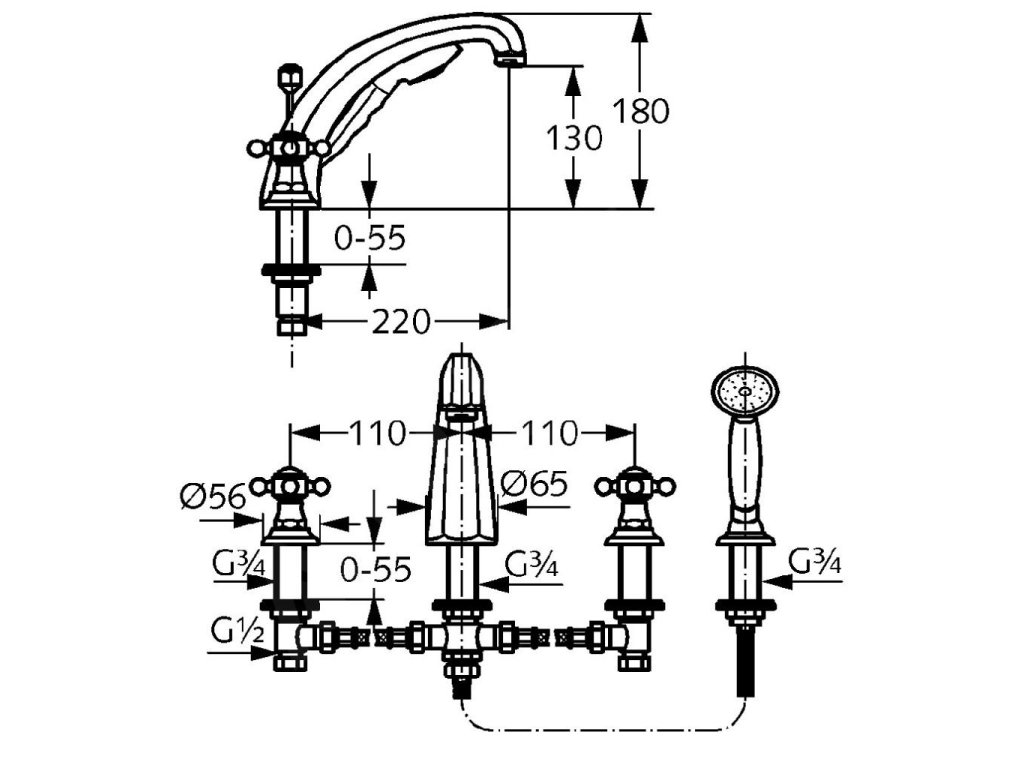 - automatický přepínač vana/sprcha