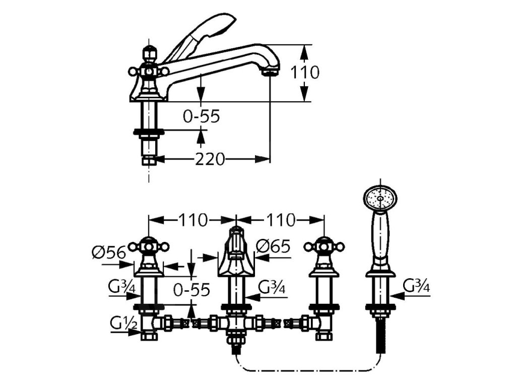 KLUDI 1926 baterie na okraj vany, 4-otvorová instalace, chrom, 515250520