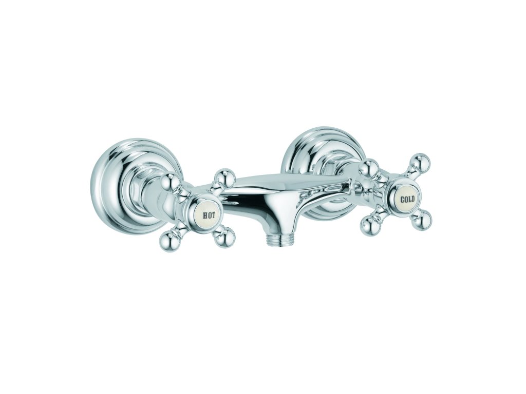 Kohoutková nástěnná sprchová baterie bez sprchového setu. V chromovém provedení. Rozteč baterie 150 mm.