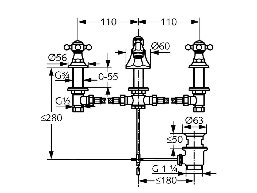 - s výpustí ovládanou táhlem G 1 1/4