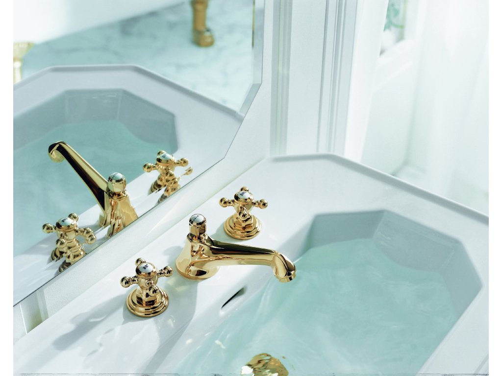 KLUDI 1926 umyvadlová baterie, 3-otvorová instalace, s výpustí, zlatá, 510464520