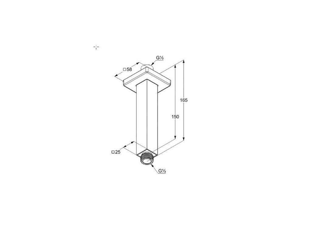 Kludi A-Qa je čtyřhranné stropní rameno se standardními trubkovými závity G 1/2 jak nahoře, tak i dole. Je vybaveno posuvnou rozetou, celková délka činí 165 milimetrů. Čtvercová posuvná rozeta má rozměry 58 x 58 milimetrů.