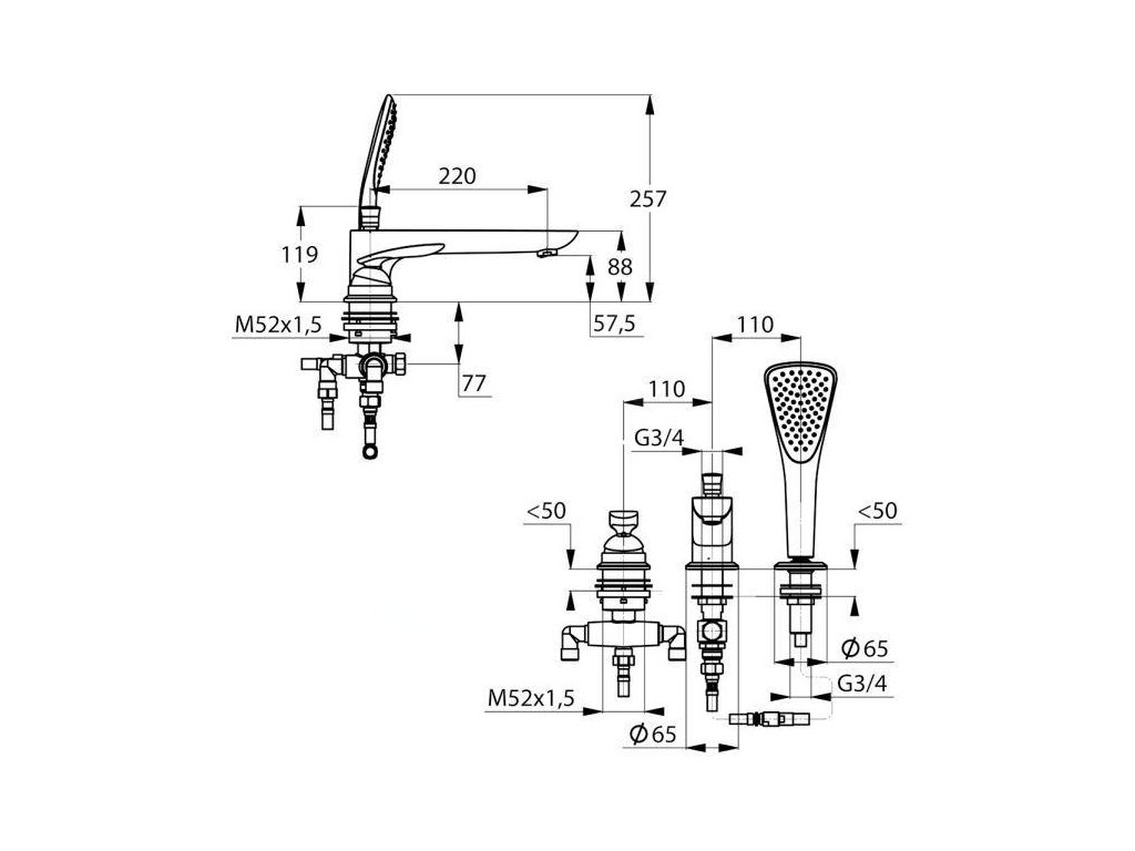 - automatický přepínač: sprcha/vana