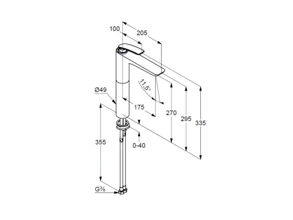 Stojánková jednootvorová baterie s vysokým výtokem, DN 15