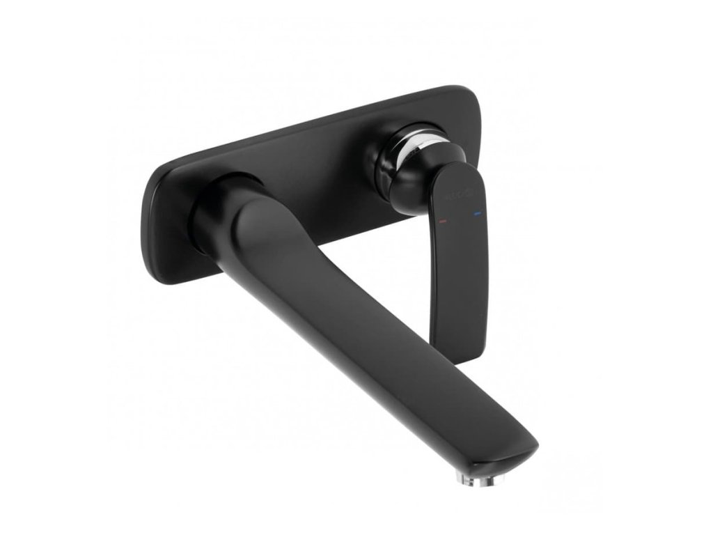 Páková podomítková umyvadlová baterie bez podomítkového tělesa. V černé barvě. Průtok baterie je 6 litrů/minutu. S matným povrchem.