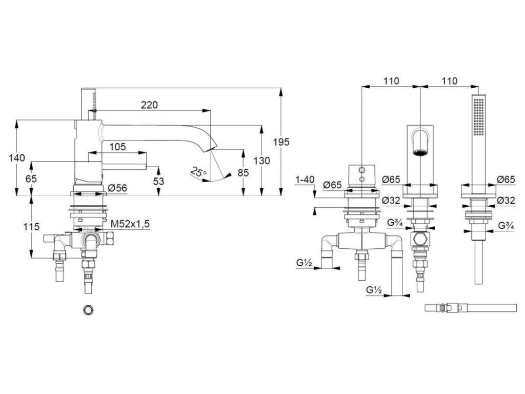 - instalace na okraj vany na montážní těleso