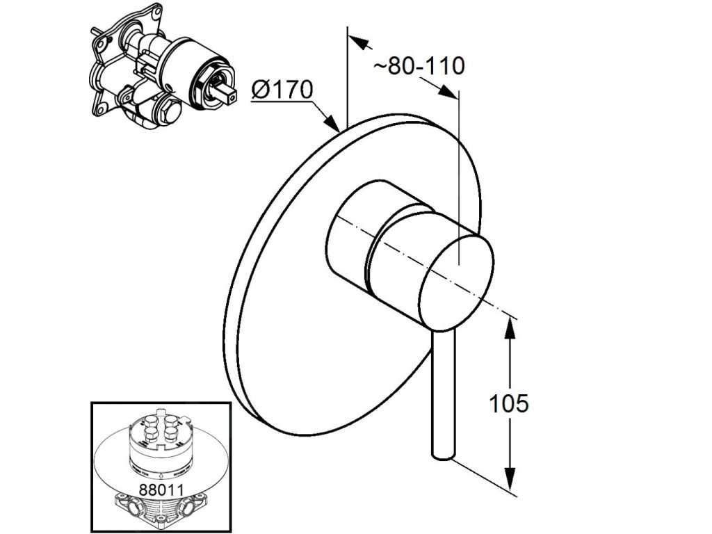 Ke Kludi Bozz přísluší montážní těleso Kludi Flexx.Boxx, které je třeba objednat zvlášť.
