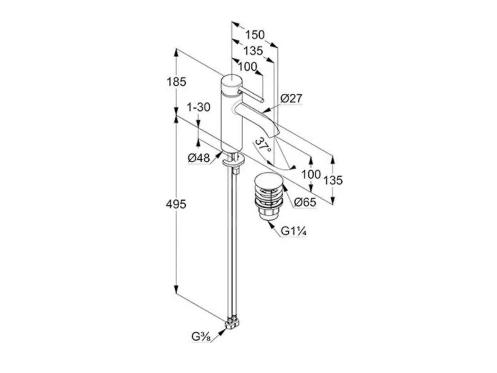 KLUDI BOZZ umyvadlová baterie s výpustí Push-Open, kartáčovaný nikl, 38288N576