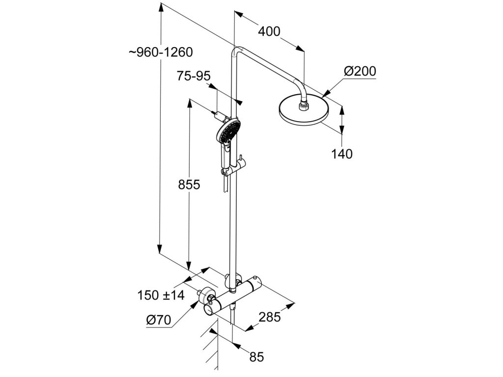 - sprchová tyč s výškově nastavitelným ramenem