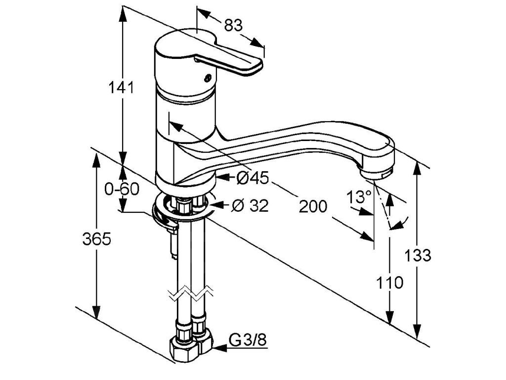 - flexibilní přípojky G 3/8
