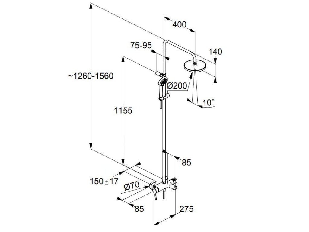 - otočný ventil 120° nastavitelný pro nastavení ruční a hlavové sprchy