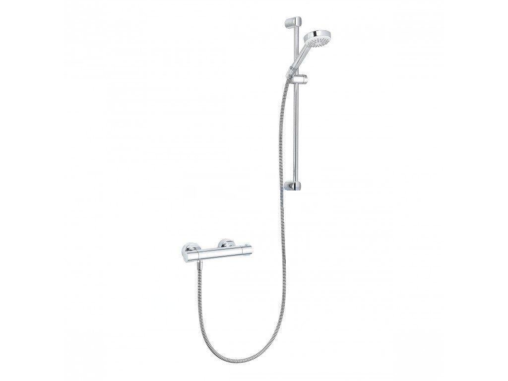 Ústřední součástí setu ale je nástěnná termostatická sprchová baterie Kludi Basic DN 15. Jde o baterii moderního typu, s uzavíracím ventilem a ovladačem teploty s bezpečnostní zarážkou na 38 °C.