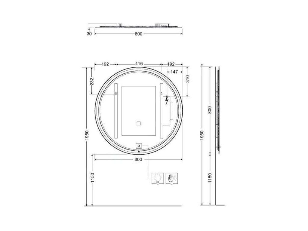 KLUDI LUMA zrcadlo s LED osvětlením a vyhříváním, 80x80 cm, dotykový senzor, 17SP0200