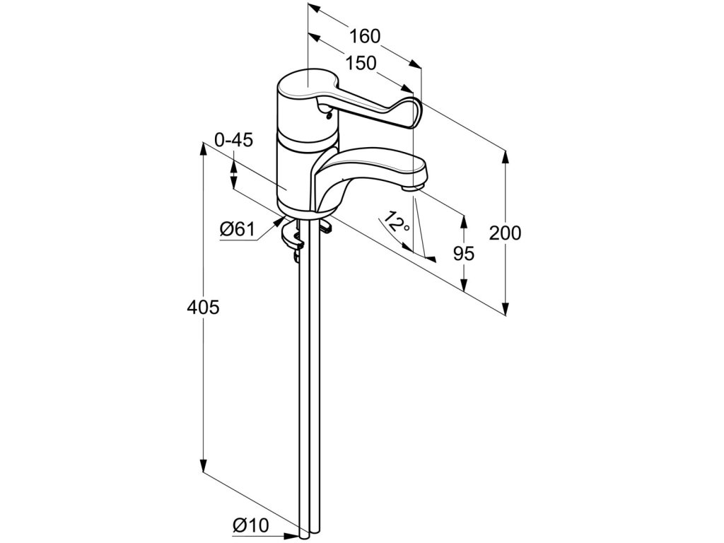 Páková stojánková umyvadlová baterie bez výpusti. V chromovém provedení. Průtok baterie je 8 litrů/minutu.